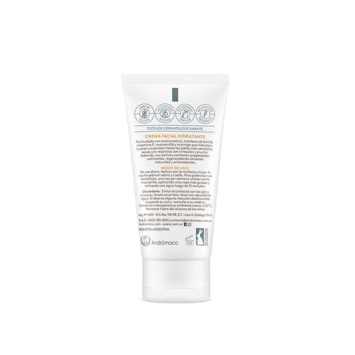 La crema facial Aveno hidrata, nutre y suaviza las pieles secas y sensibles. Ayuda a descongestionar y a calmar la irritación de la piel. Puede ser utilizada en pieles reactivas con irritación y prurito. Posee manteca de karité que otorga propiedades emolientes, manzanilla que descongestiona, extracto de moringa que funciona como anti polutivo y alantoína que otorga propiedades anti irritantes e hidratantes. Puede utilizarse de día y de noche, sola o en combinación con otros tratamientos dermatológicos o cosméticos.