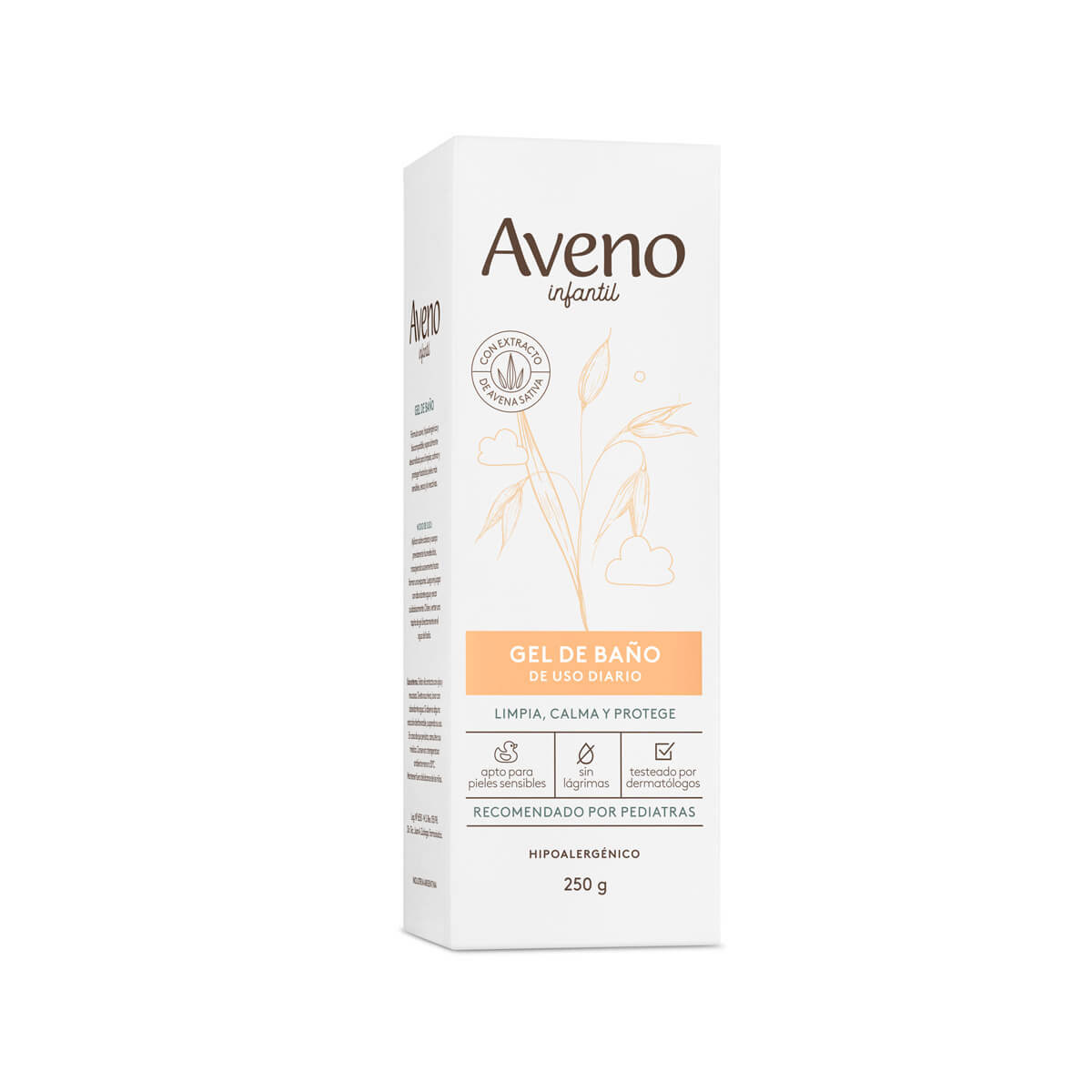 El gel de baño Aveno Infantil es un limpiador de uso diario, humecta y protege las pieles sensibles y reactivas de los niños. Su formulación con avena natural brinda una limpieza suave y agradable en la delicada piel de los más chicos, ya que es hidratante, nutritiva y regeneradora. No irrita los ojos y no contiene perfume. De fácil enjuague. Sin parabenos.