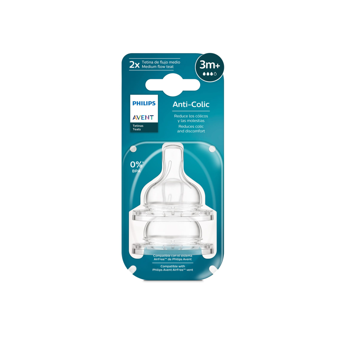 Nuestra tetina anticólicos 3 cuenta con una válvula integrada que permite evitar que el aire entre a la pancita del bebé y se recomienda para bebés de tres meses en adelante.
