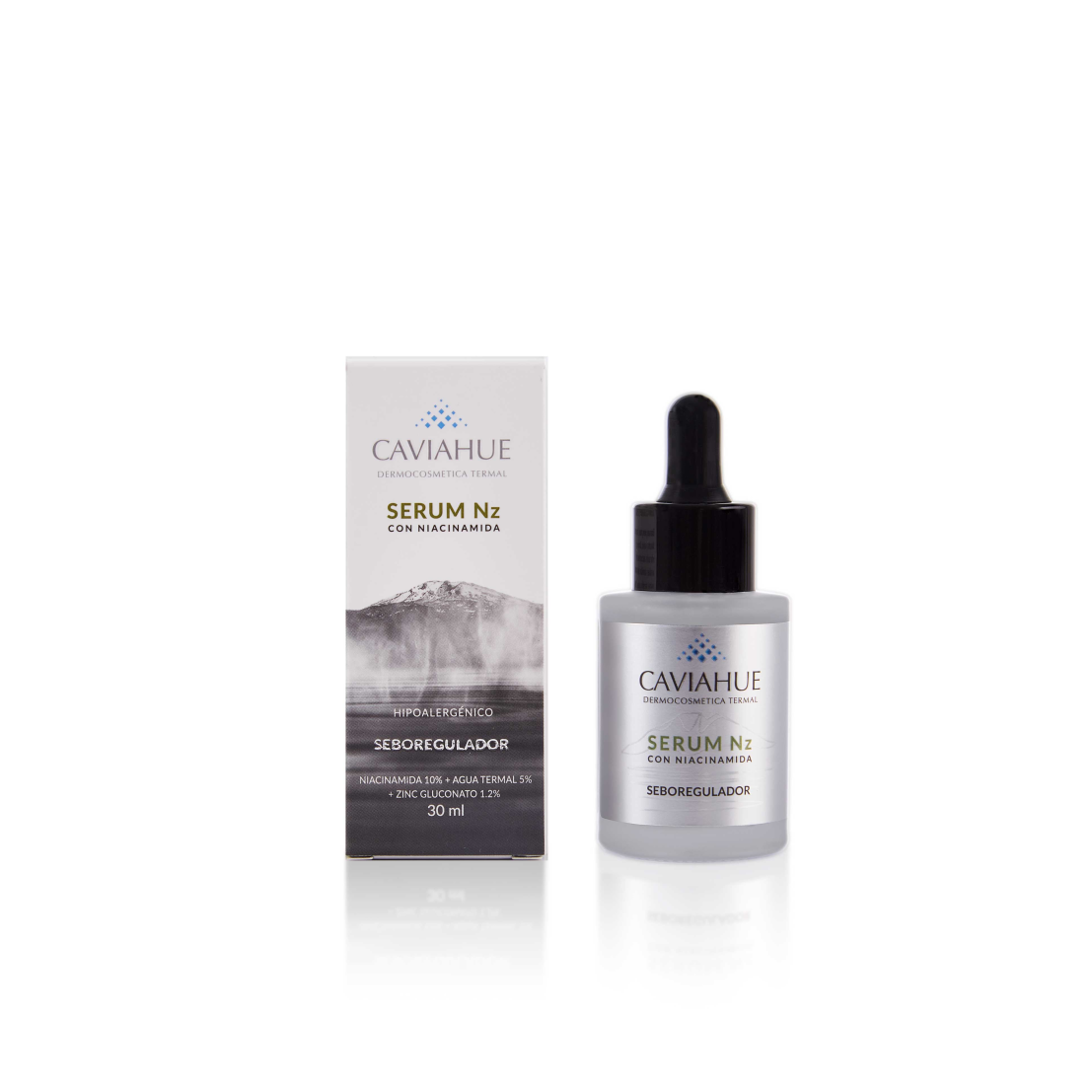 El Serum Nz, de vitaminas y minerales, contiene Niacinamida al 10%, agua termal volcánica y vitamina E. Seboregulador, antiinflamatorio y calmante.