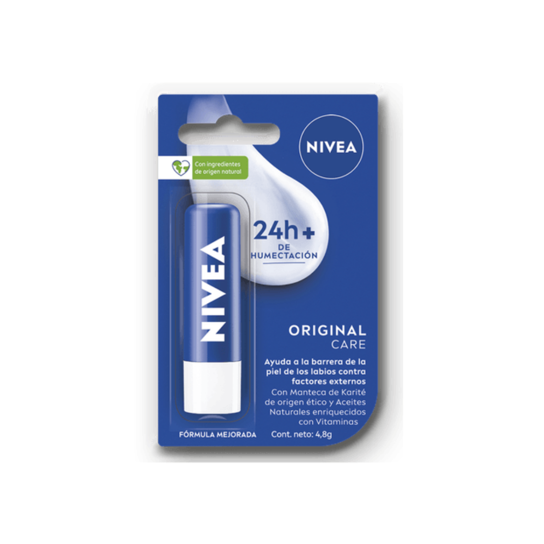 El Protector labial NIVEA Essential Original Care cuida los labios para mantenerlos suaves y protegerlos del resecamiento durante todo el día. Su fórmula con Aceites de origen Natural y Manteca de Karité tiene una placentera textura que se funde instantáneamente en los labios dejando una apariencia natural, tersa y sin color.