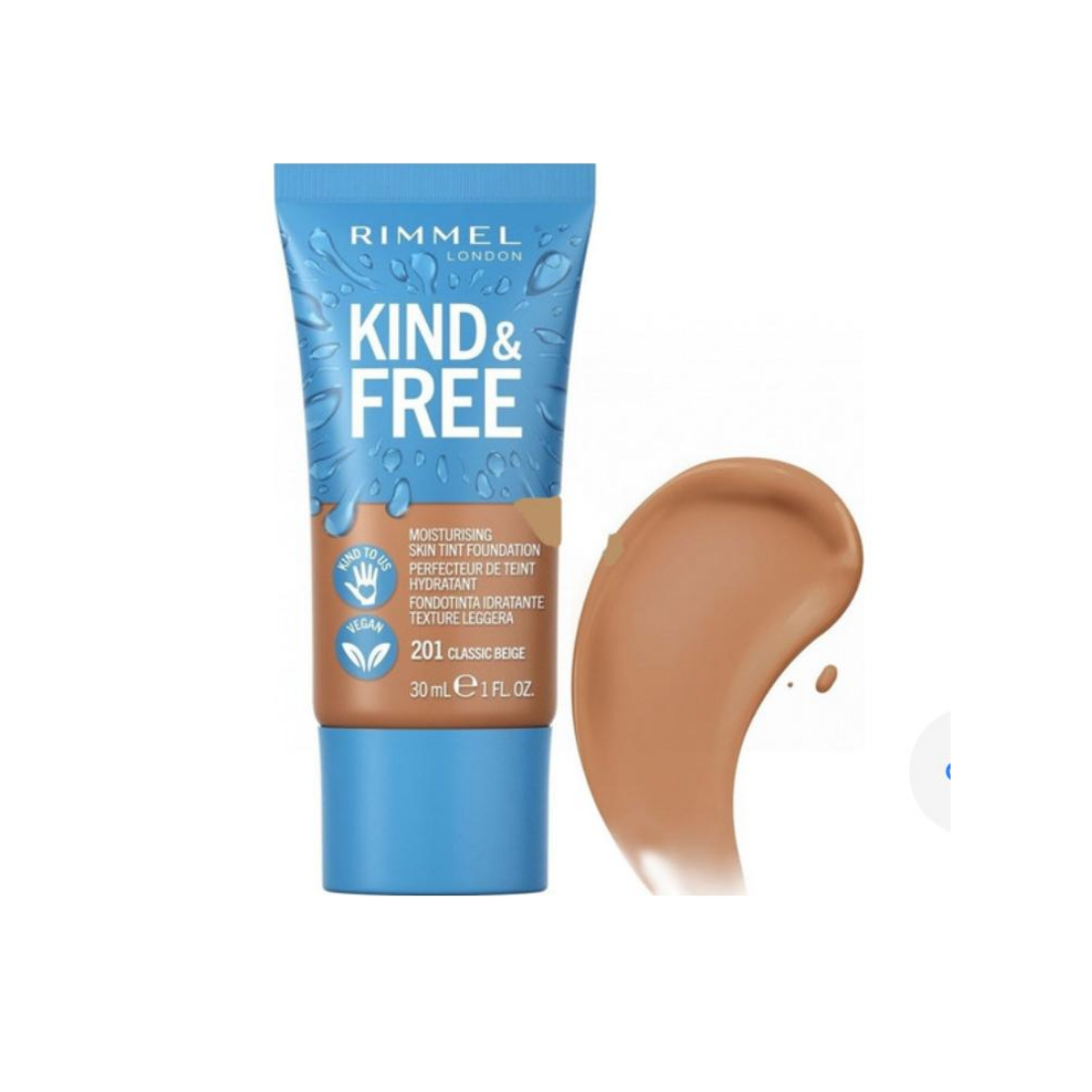 RIMMEL KIND & FREE Base de maquillaje hidratante Con vitaminas E y B5. Libre de Crueldad y Vegano