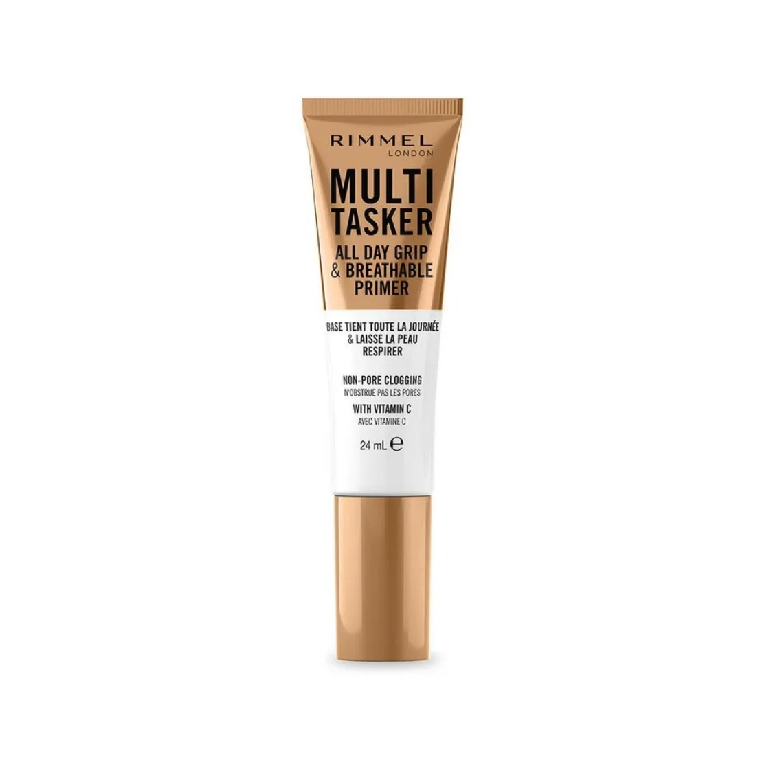 Rimmel Multi-Tasker Primer es una prebase ligera con textura de gel. Este primer facial tiene una fórmula vegana con Vitamina C y Ácido Hialurónico. Se puede utilizar para preparar la piel para el maquillaje o utilizarla sin maquillaje como gel hidratante. El maquillaje queda fijado durante todo el día, con un efecto alisador para realzar el cutis. Un primer de maquillaje que hidrata al instante, deja respirar la piel y no obstruye los poros.